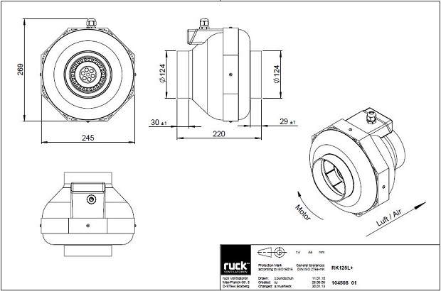Kompakter rückwertsgekrümmter Rohrventilator mit Kunststoffgehäuse. Ruck Rohrventilatoren können durch Regelung mit KLC2M oder anderen Reglern drehzahlgesteuert werden und sie haben einen integrierter Thermoschalter. Can Ventilatoren sind sehr laufruhig.