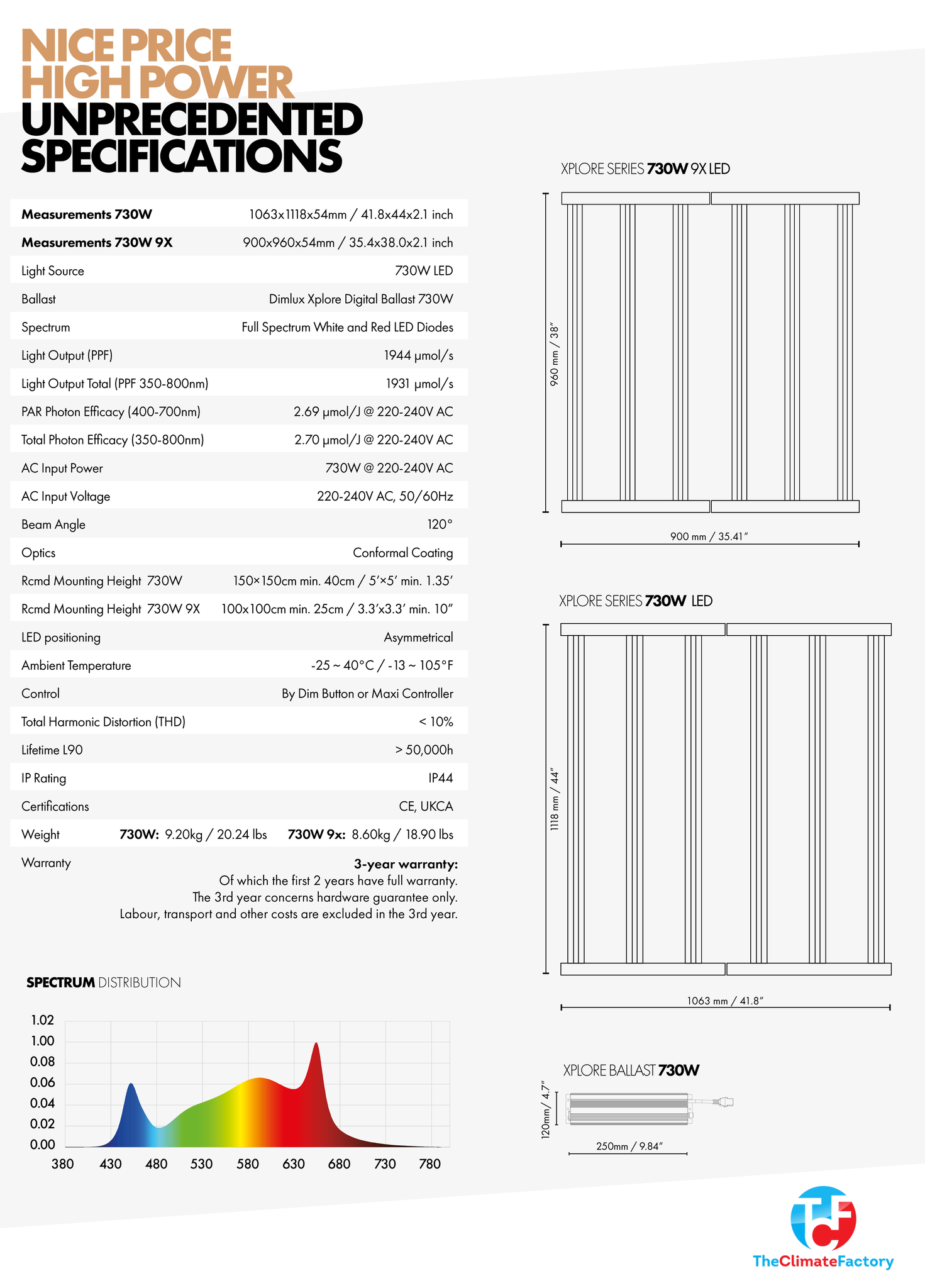 Die DimLux Xplore Series 730W LED bietet ein noch nie dagewesenes Preis-Leistungs-Verhältnis mit einer perfekten Mischung aus weißen und roten Vollspektrum-LEDs.