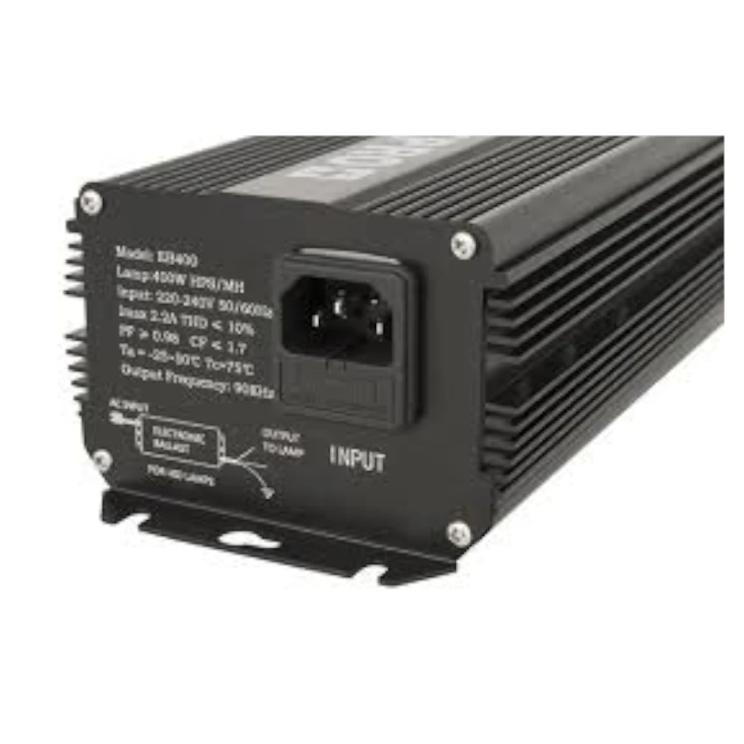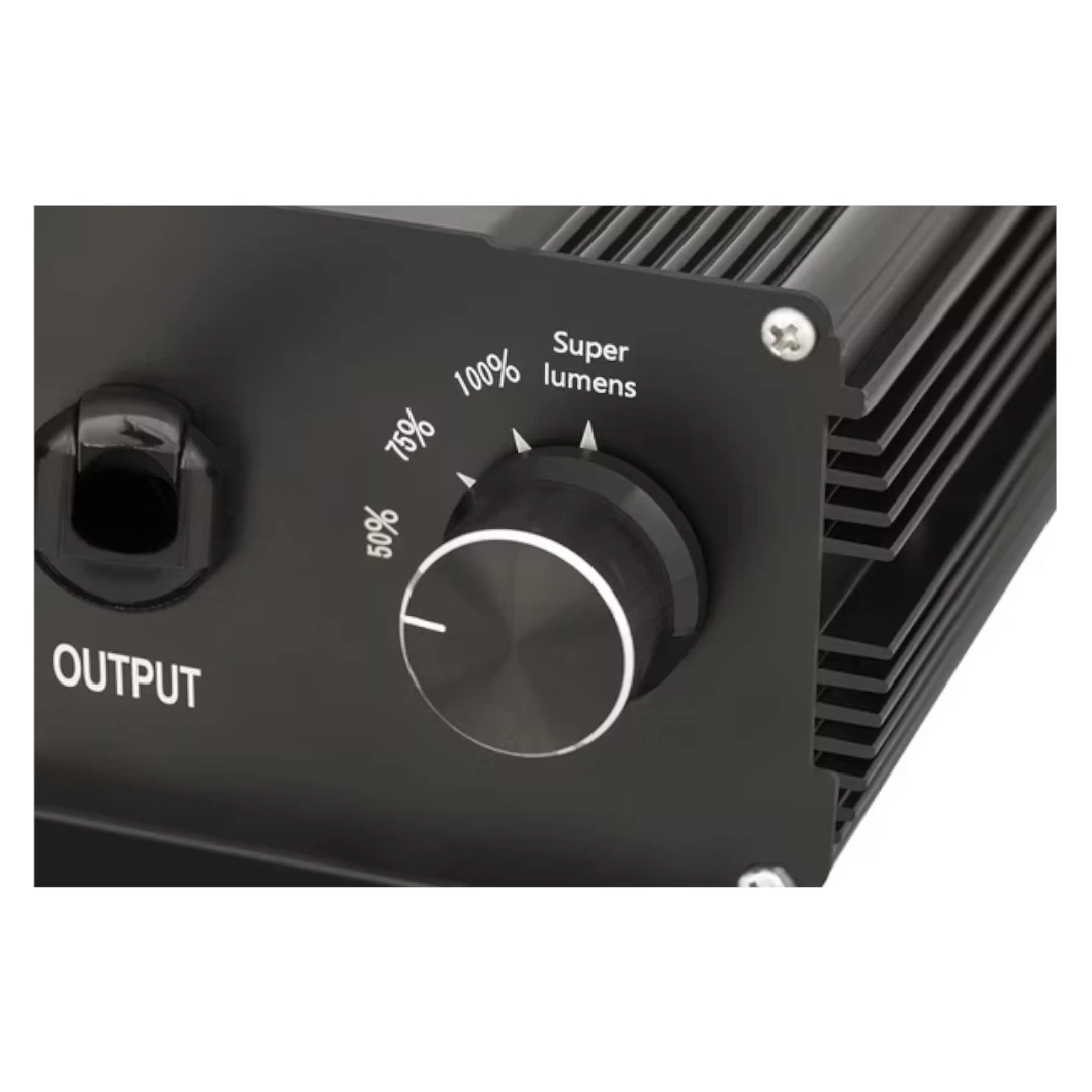 Kompaktes, elektronisches Vorschaltgerät 600W dimmbar für HPS + MH Leuchtmittel. Das Vorschaltgerät kann auf 250W und 400W gedimmt werden oder auf 600W bzw. 600W Superlumen betrieben werden. Dank der passiven Kühlung läuft es äusserts geräuscharm.