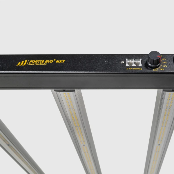 Für ein perfekt abgestimmtes Spektrum, reduzierte Hotspots, stärkere Pflanzenreaktionen und ein professionell steuerbares Gesamtsystem sorgen das DimLux NIR+UV Add-On sowie der Fortis BYD Master Controller, die gemeinsam eine feinere Spektrumanpassung, höhere Stabilität und eine gleichmässige Lichtführung ermöglichen – ideal für alle, die ihr Setup technisch und ertragstechnisch auf das nächste Niveau bringen wollen.