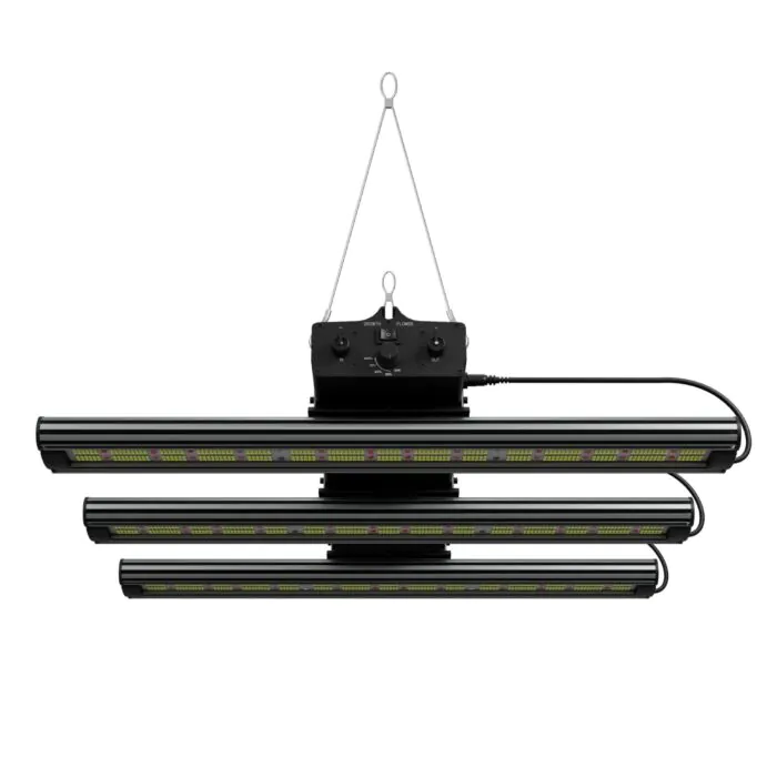 - Dimmung: 4 Stufen (über Drehregler und Schalter), 2-Kanal (Wachstum/Blüte)