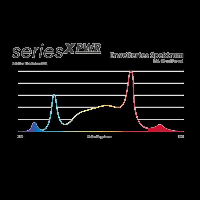 - Spektralbereich: ca. 365–780 nm (Vollspektrum inkl. UV & Far-Red)