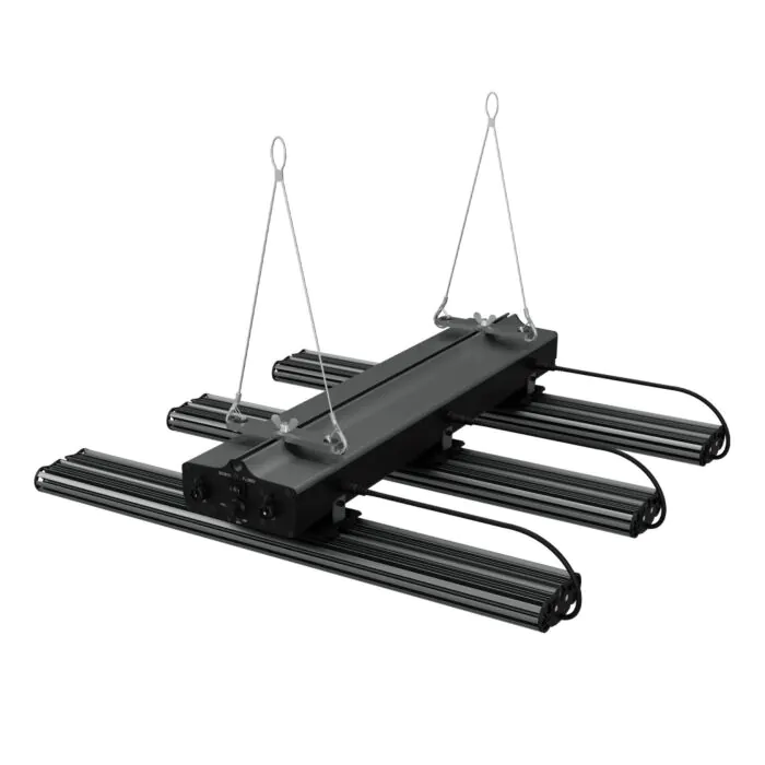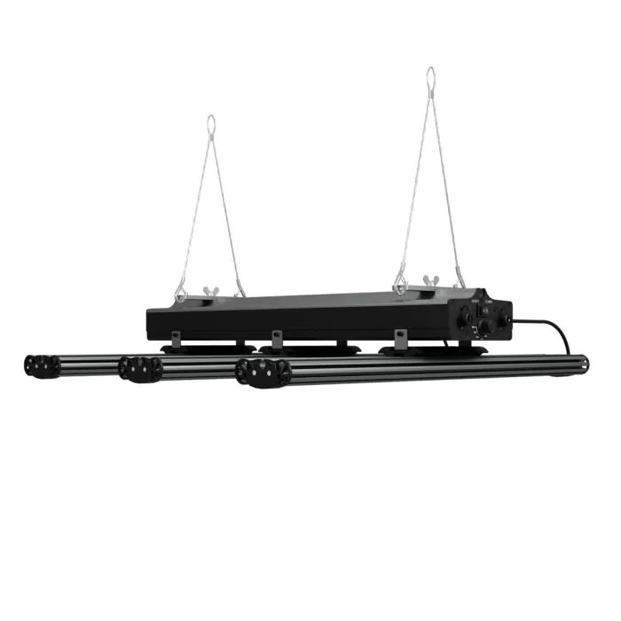 Technisch liefert die GCx-9 PWR bei 360W eine Photonenflussleistung von 1062 µmol/s bei 2,95 µmol/J. Die Leuchte arbeitet mit einem 2-Kanal-Ansatz (Wachstums- und Blütespektrum) und bietet eine 4-stufige Dimmung über Drehregler und Schalter, damit du die Intensität ohne “höher hängen müssen” anpassen kannst. Zusätzlich ist eine externe Steuerung über den GC-SIGNAL Controller möglich – relevant, wenn mehrere Lampen synchronisiert oder zentral geregelt werden sollen. Dazu kommen 120° Abstrahlwinkel, 100–277 V Eingangsspannung und ein kompaktes Format (60 × 60 × 11 cm) bei 7,5 kg, ausgelegt auf eine nominelle Lebensdauer von über 50’000 Stunden. Kurz: Eine leistungsstarke 360W-Klasse für alle, die ein quadratisches Setup sauber und kontrolliert fahren wollen – mit UV- und Far-Red-Anteil direkt im System.