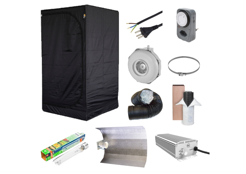 Einfache Growbox zum starten deines Projekts mit Lüftung und Lampen. Übersicht Growbox: 1x Mammoth, Classic+ - 80 Vorschaltgerät: 1x Elektronisches Vorschaltgerät - 600W dimmbar Lampe: 1x Osram 250 Watt Nav-T Super 4Y, HPS Reflektor: 1x Reflektor, Stukko Lampenaufhängung: 1x Lampen JoJo Set Abluftventilator: 1x Can Fan, Rohrventilator RK 100L - 270M³/H Aktivkohlefilter: 1x Can Lite Aktivkohlefilter 100mm - 300M³/H Lüftungsschlauch: 1x Lüftungsschlauch COMBI 100mm - 10m Zubehör: 1x Bride 1x Kabel für Lüfter 1x Brennstuhl Zeitschaltuhr
