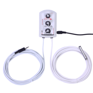 Der Unterdruckregler ist ein temperatur-abhängiger Drehzahlregler für belüftete Räume mit Zu- und Ab-Luftventilator. Der Fan Controller hält die Raumtemperatur sowie den Unterdruck konstant um zu verhindern das Gerüche entweichen können. Er ist einfach zu bedienen, die gewünschte Temperatur, Minimahldrehzahl und der Unterdruck wird an drei Knöpfen eingestellt. Der Fancontroller kann auch nur mit einem Abluftventilator betrieben werden wenn die Luft auf natürlichem Wege angesaugt wird. Der Fancontroller wird als eine Einheit geliefert und ist fertig für den Gebrauch. Dieser zuverlässige Fancontroller kommt komplett in einem wasserdichtem Gehäuse, Steckern mit Klapp-Deckel und einem digitalen Kleinspannungsensor, der es zum vollkommenen Regler für feuchte Räume macht. Der Sensor wird mit einem 4 Meter langen Kabel geliefert und kann bei bedarf bis zu 50 Meter erweitert werden. Größen und technische Daten:Gehäuse: BxHxT = 130x80x70mm Fancontroller: BxHxT = 160x100x90mm Entworfen für: 2A / 2x200W / TRIAC 2x16A Volt: 230V / 50Hz Digitalsensor: 5V Misst Temperaturen von -55°C bis +125°C (-67°F zu +257°F) 0.5°C Genauigkeit von-10°c bis +85°C Schutzklasse: IP54 Einstellmöglichkeiten: Temperature: 20C° to -30C° Minimum speed: off, 20% to -100% Negative pressure: 100% to -50%