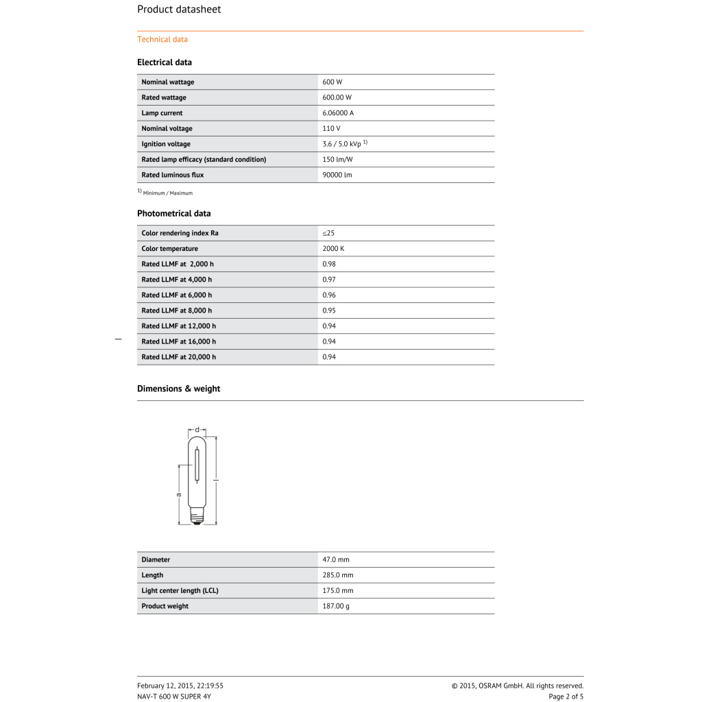 Wer nach höchster Qualität im Niedrigenergie-NDL-Bereich (600 W) sucht, wird mit dem beliebten Markenleuchtmittel aus dem Hause Osram garantiert zufrieden sein!