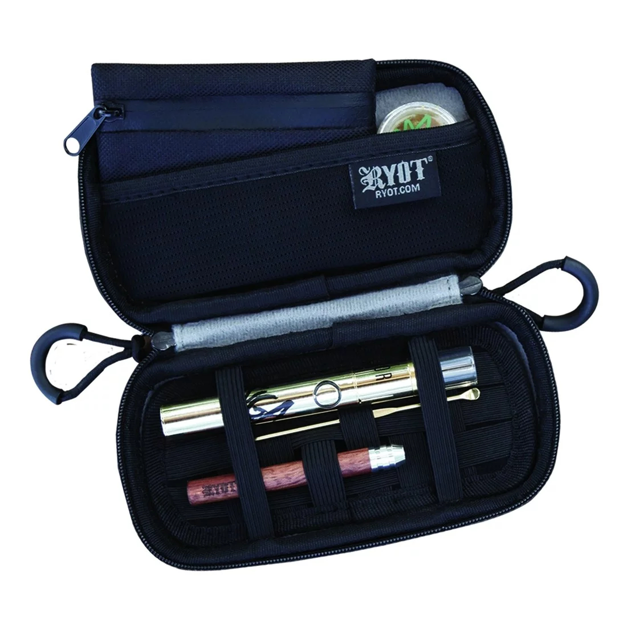 Das RYOT® PackRatz™ Small Carbon Series Kissenetui ist perfekt für die Aufbewahrung kleinerer Glaspfeifen, Vaporizer und Kräutern. Die Smell Safe® Carbon Series™ verhindert, dass entweichende Gerüche den Inhalt verraten und ist eine erstklassige Wahl für diskrete Aufbewahrung und Transport. Ein strapazierfähiges, wetterfestes Canvas-Außenmaterial bietet Schutz vor den Elementen.